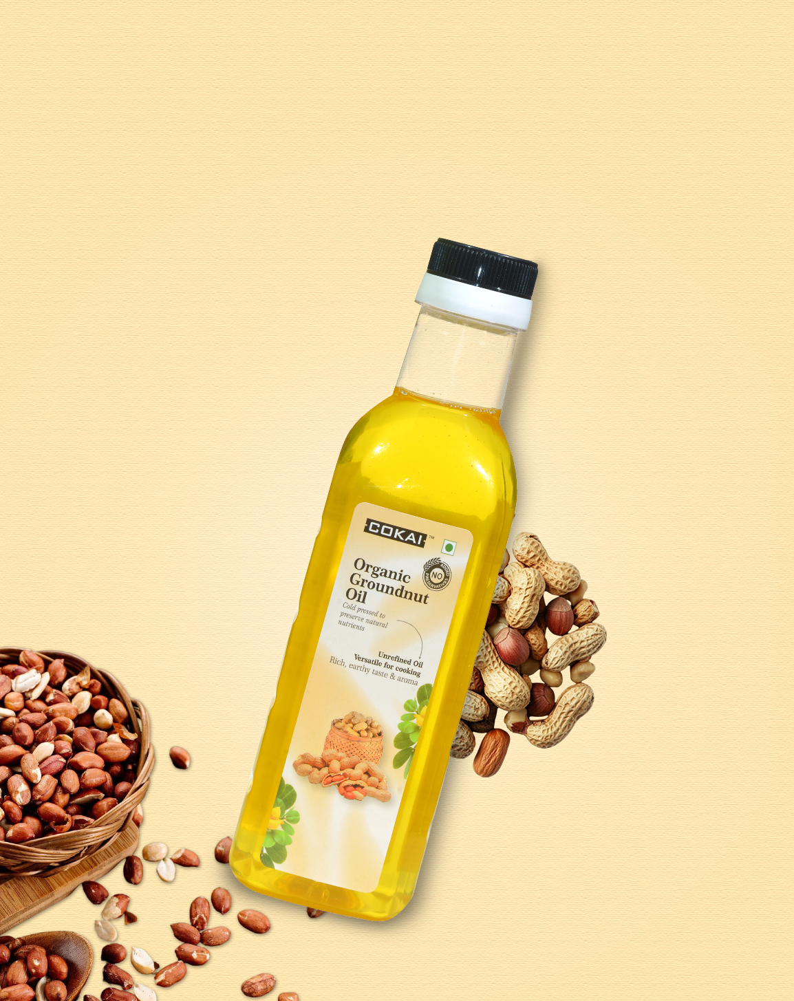 Our Organic Groundnut Oil is made from premium-grade, locally grown groundnuts using a traditional wooden ghani. This slow, cold-pressed method at low temperatures (<45°C) preserves nutrients, aroma, and natural antioxidants without any chemicals or preservatives.